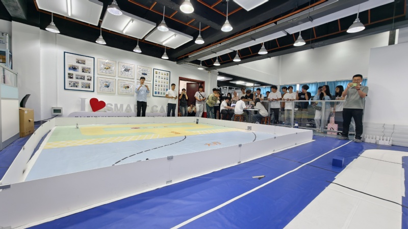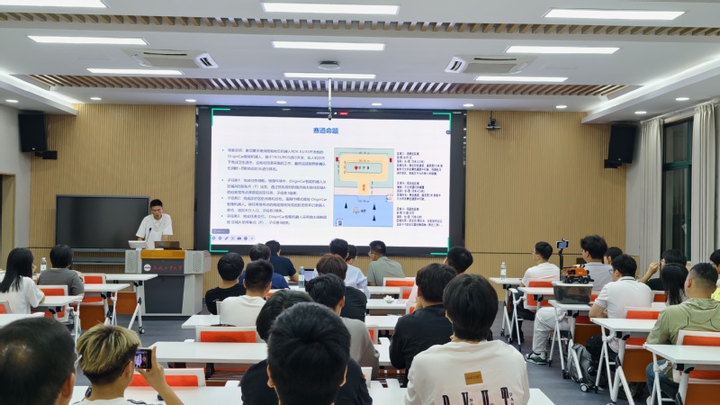 随后,古月居公司工程师详细讲解了第20届全国大学生智能汽车竞赛地瓜机器人智慧医疗创意组的比赛规则,并与现场人员深入交流了比赛的相关技术细节。讲解结束后,参会成员前往文法楼236,由古月居公司工程师和学院大学生创新实践中心的同学共同为参加开放日的成员演示了完整的比赛流程。