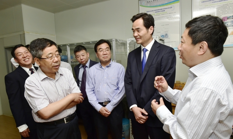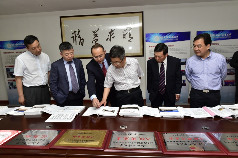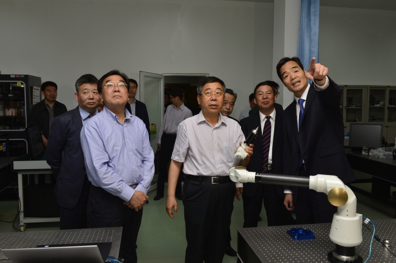 陈宝生一行参观了我院微纳测量技术与系统、坐标测量与仪器、全场光学与散斑测量实验室,听取了学院学科重点研究方向、最新科研进展和人才培养成果的汇报。在微纳测量技术与系统实验室陈宝生详细了解了纳米坐标测量机的技术进展,询问了测量机测头尺寸与测量精度;在坐标测量与仪器实验室陈宝生听取了该团队的介绍,并亲手对于连栋教授主持研发、填补国内空白并由国家重大科学仪器设备开发专项支持的项目成果——关节式坐标测量机进行了试测;在全场光学与散斑测量实验室陈宝生听取了实验室负责人的介绍,了解了散斑测量技术的应用状况,陈部长充分肯定了科研人员所取得的成绩。