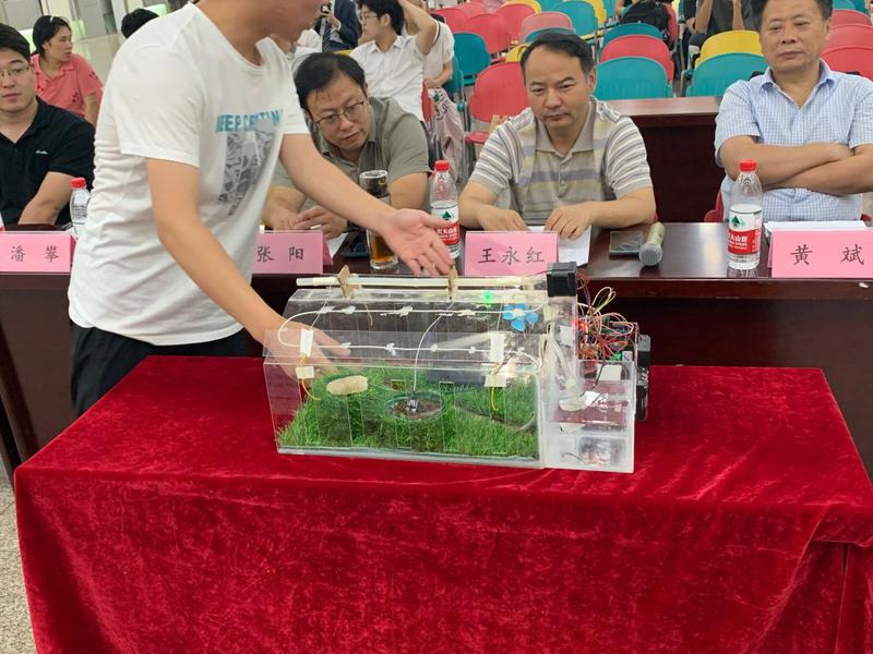 大赛共收到来自合肥校区的85件参赛作品,经过初赛和复赛,最终有19件参赛作品进入决赛环节。决赛中各参赛小组依次从创意来源、作品功能、成果展示等方面展示各自参赛作品。在实物演示环节中,参赛选手现场演示了AI智能无人车的灵敏运行、智能管理大棚根据不同环境情况来进行应对处理、基于OBD标准协议的车辆信息检测系统记录行车时的各种数据、多功能新型智能药盒的智能收录、六足机器人的联合定位等,观赛同学啧啧称奇,现场不时传来热烈掌声。