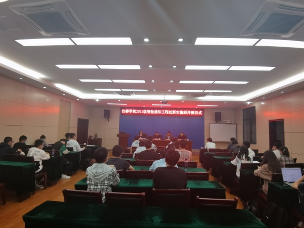 仪式上,夏院长宣布“智能感知工程”创新实验班开班,并宣读班主任任命的决定,他指出“智能感知工程”创新实验班是学院深入落实学校“立德树人、能力导向和创新创业”三位一体教育教学集成体系的重要举措,是针对学院优势学科开展新工科人才培养的有益探索,对于完善人才培养体系和教育教学质量保障体系具有积极意义。他希望同学们认真学习专业领域知识,增强实践动手能力,培养创新创业意识,争取早日成为具备国际竞争力的高素质复合型新工科人才。创新实验班班主任张阳在发言中表示会尽其所能,解放思想,更新观念,积极完成实验班的教育管理和创新实践工作,全心全意地为同学成长发展服务,努力将创新实验班打造成具有学院人才培养特色的靓丽名牌。创新实验班赵世伟代表同学感谢学院提供这么好的学习实践平台,表示会珍惜机会,努力学习,不辜负学院和老师的殷切期望,早日成才。仪式最后,学院测控技术与仪器系副主任舒双宝向同学们详细解读了“智能感知工程”专业人才培养方案,全面阐释了该专业的优势及潜力,更加坚定了同学们的专业自信和学习信心。
