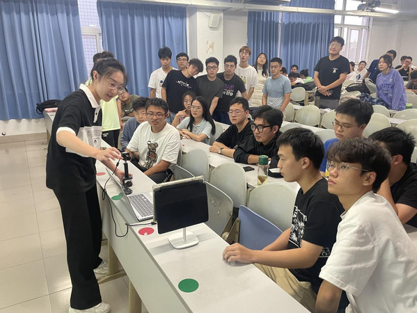 最后,上届安徽省光电大赛一等奖获得者19级谢雨馨同学与大家分享了相关比赛经验,为大家展示了赛题的硬件制作方案、软件算法流程,并进行了实物现场演示。至此,本次宣讲会圆满结束。