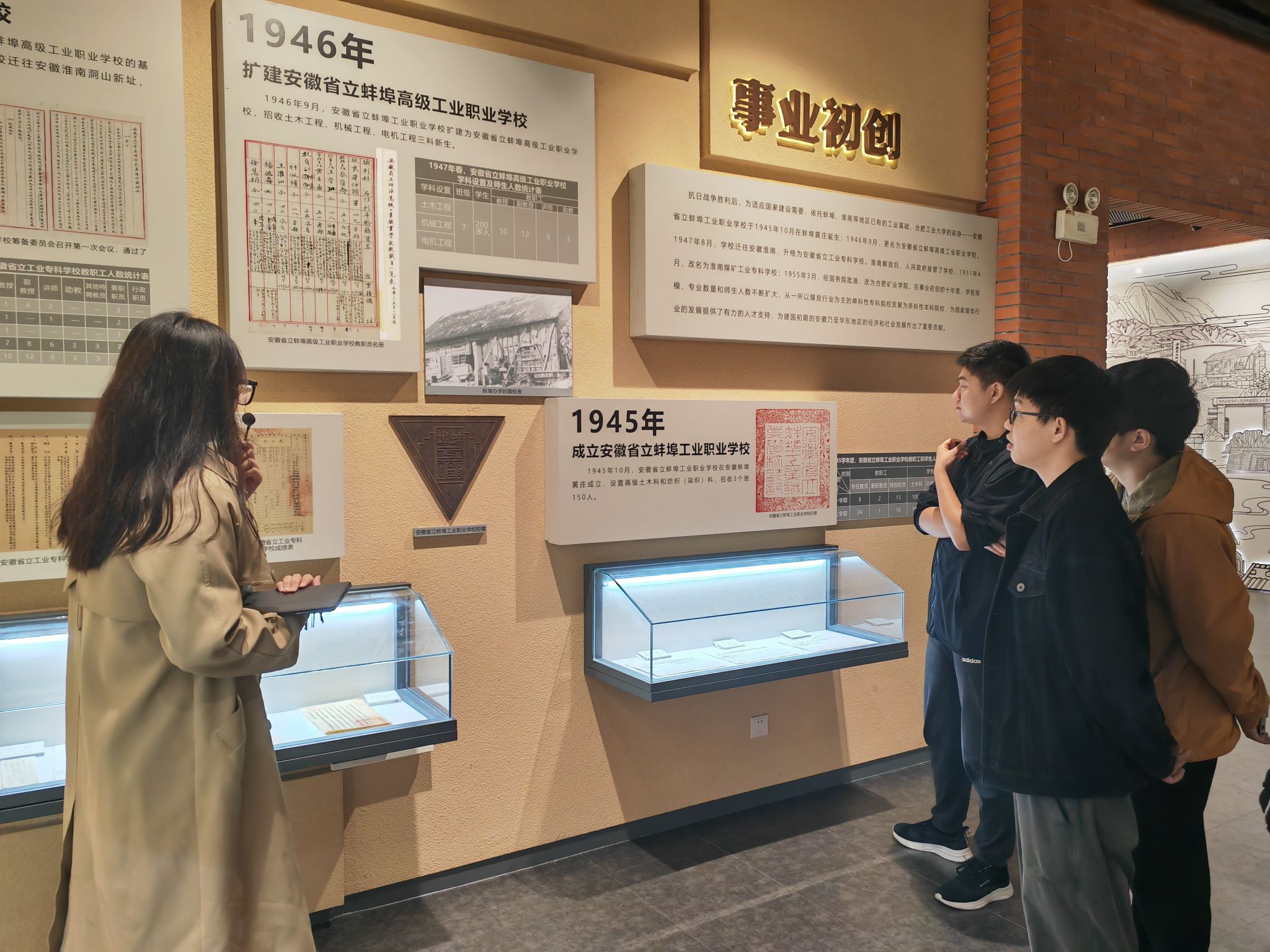 活动当天,在讲解员的带领下,同学们在馆内先后参观了事业初创、校址南迁、改革前行、创新发展、硕果累累、校友风采等六个展厅。邓小平同志亲笔题写的英国上市公司365校名、蚌埠工职时期的校徽、我校无线电专业研制的全国第一台200万伏特静电电子加速器复原实物等珍贵历史物件,辉映着一代代工大人的奋斗与梦想。参观结束后,支部党员进行了主题交流,纷纷表示要铭记身为工大学子“工业报国”的初心使命,践行“厚德、笃学、崇实、尚新”的校训要求,努力以自身行动为学校增光添彩。