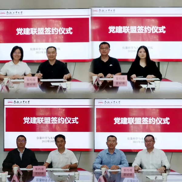 随后,学院4个教师党支部书记分别与安徽医科大学第一附属医院、安徽皖仪科技股份有限公司、合肥埃科光电科技股份有限公司和合肥格易集成电路有限公司4家企事业单位所属基层党支部负责人签订了党建共建共联协议书。签约仪式结束后,双方开展了座谈交流,并一同前往学院“全国首批党建标杆院系”活动室和师德学习园地——“沿着费业泰教授的足迹”进行了参观活动。