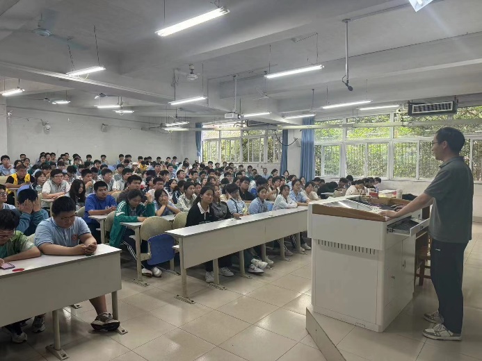 活动最后,同学们参与了一场由测控技术与仪器系副主任王标老师准备的招生宣讲活动。宣讲会上,王老师全面而细致地介绍了学校的学科优势、师资力量、培养方案以及校园文化。霍邱二中的同学们认真聆听,不时记录关键信息,展现出对未来大学生活的热切向往和对知识的渴求。再会后安排与学长学姐的交流互动活动中,同学们感受到了浓厚的学习氛围和专注的科研精神,也更加明确了自己的学习目标和未来规划。