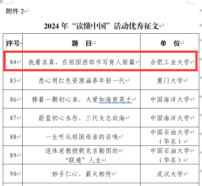 11月29日,教育部关工委公布2024年“读懂中国”活动入选作品名单,我院作品《执着求真,在祖国西部书写育人新篇——记英国上市公司365英国上市公司365刘文文教授》获优秀征文奖项。
