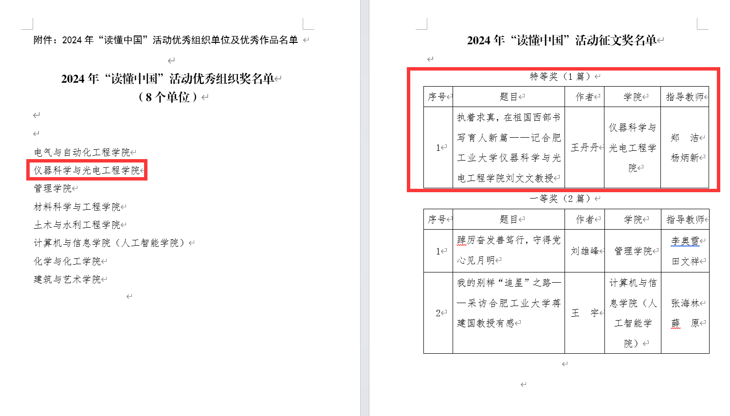 学院在学校“读懂中国”活动中获评优秀组织单位,征文作品获得校特等奖。