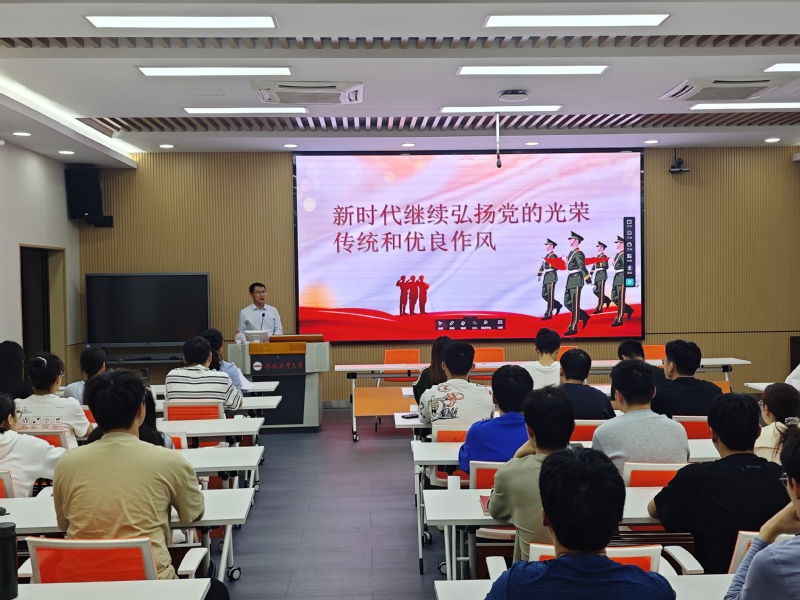 开班仪式后,学院党委书记李军鹏做《新时代继续弘扬党的光荣传统和优良作风》专题党课。他从党的光荣传统和优良作风的科学内涵、本质特征、现实价值、实践路径四个方面,以生动鲜活的事例讲述了党的光荣传统和优良作风的发展历程,深度解读了新时代下党的光荣传统和优良作风的变化,希望同学们做到坚定理想信念、提高综合素质,争做有理想、敢担当、能吃苦、肯奋斗的新时代好青年。