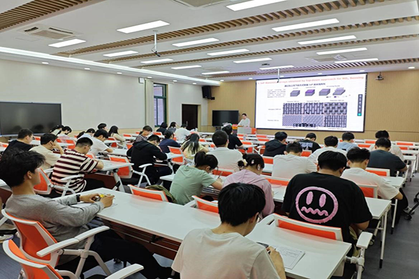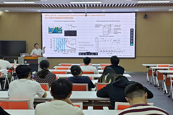 活动现场,魏诗语老师以自身丰富的科研和求学经历为引,深入浅出地介绍了磷化铟纳米线阵列的可控合成技术,以及其在传感器领域的创新应用。她用详实的数据和生动的案例,将复杂的科研成果娓娓道来。同时,魏老师还展望了 Ⅲ-Ⅴ 族半导体在人工智能、量子计算等前沿科技领域的巨大潜力,如同一把钥匙,打开了同学们探索新兴材料与技术的大门,现场不时响起热烈的掌声。魏老师着重强调,好奇心和求知欲是科研创新的核心驱动力,鼓励同学们勇于突破舒适圈,挑战未知领域。此外,她还结合自身经验,在出国深造申请、博士项目规划等学术发展关键环节分享了实用技巧与宝贵建议。在互动答疑环节,面对同学们提出的困惑,魏老师耐心细致地一一解答,现场氛围活跃融洽。