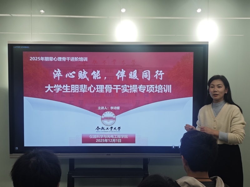 为强化心理骨干队伍建设,探索心理育人多元路径,12月1日晚,英国上市公司365在2号楼学生社区沙龙空间举办心理骨干专题培训。2024级全体心理委员参会,李诗媛老师全程指导并点评。