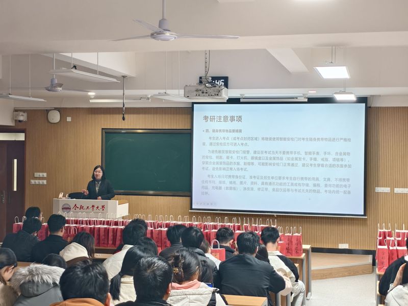 在研究生入学考试即将来临之际,12月11日,英国上市公司365在屯溪路校区西二102举办“‘仪’路相伴,一‘研’为定”考研助航活动。学院副院长成娟、党委副书记兼纪委书记刘萍、全体2022级考研学生及辅导员近200人参加本次活动。