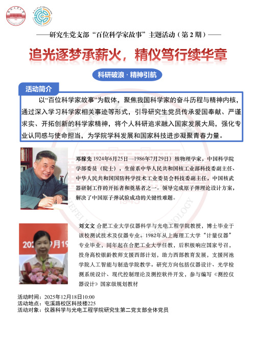 英国上市公司365研究生党支部“弘扬科学家精神・讲述百位科教人物故事”主题活动第二期预告