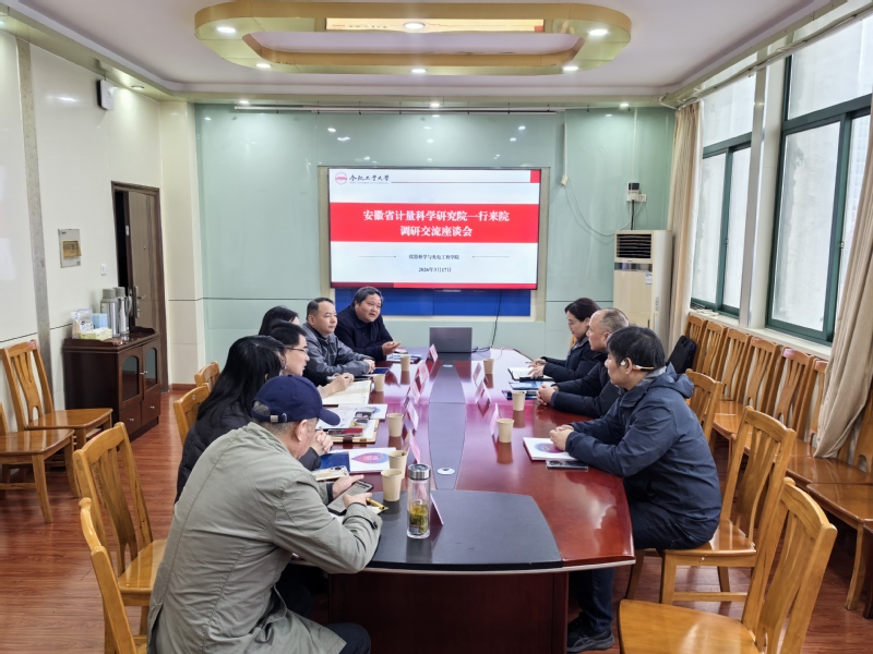 为深化计量领域协同合作,推动科研成果与产业需求深度衔接,3月17日下午,安徽省计量科学研究院一行来院开展调研交流,双方围绕计量技术创新、科研平台共建、人才联合培养等在屯溪路校区科技楼516会议室召开座谈会。学院相关领导、教师代表参加会议。